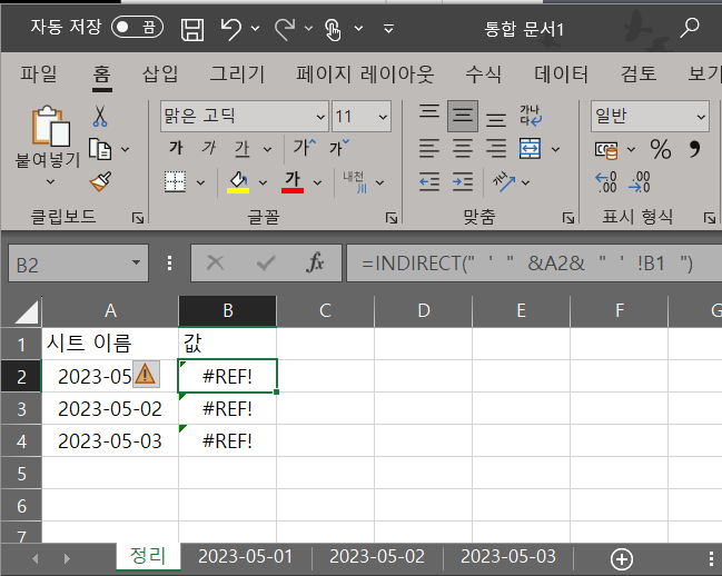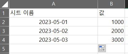 시트 이름이 2023-05-01 같은 형식이면 안되는군요.