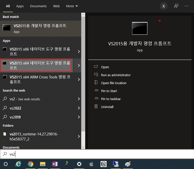 1. VS2015 x64 네이티브 도구 명령 프롬포트 실행