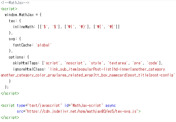 처음에는 HTML 편집 기능을 이용하여 스킨 자체에 LaTeX 수식이 인식되게 했었다.