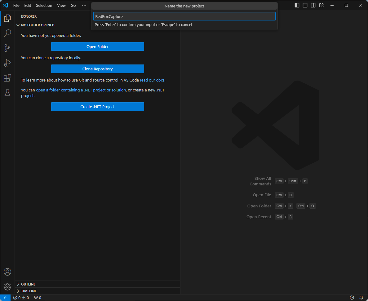 Explorer를 클릭해보니 Create .NET Project가 추가된 것을 볼 수 있었다.
