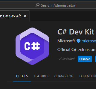 1. C# Dev Kit를 설치합니다(C# 확장자와 .NET 설치 도구가 자동으로 설치됩니다).