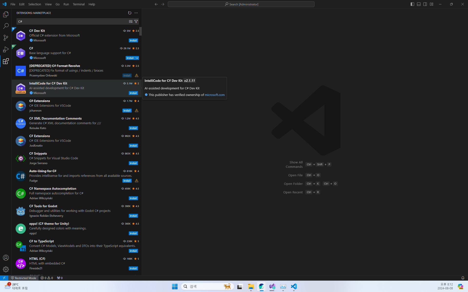 VS Code Extension에 C# 검색