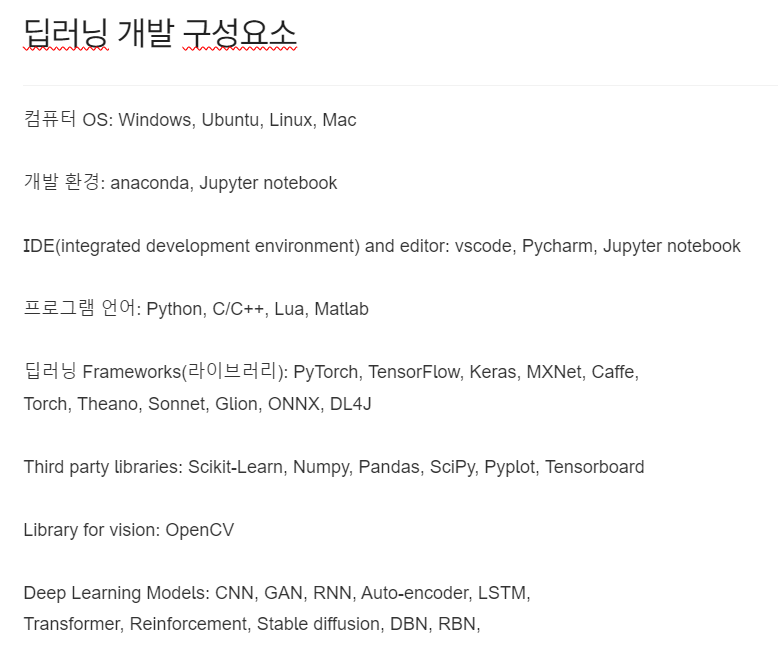 딥러닝 Frameworks(라이브러리): PyTorch, TensorFlow, Keras, MXNet, Caffe, Torch, Theano, Sonnet, Glion, ONNX, DL4J