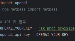 ChatGPT 4o mini API를 파이썬에서 사용하는 방법은 다음과 같습니다. 이 과정에서 openai 패키지를 사용하고, API 키를 설정한 뒤 GPT-4o mini 모델을 호출하는 예시입니다.
