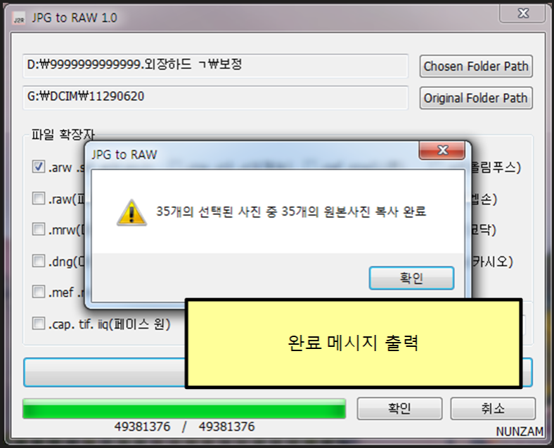 - 원본 사진들의 확장자 선택(카메라 제조사 마다 다름)