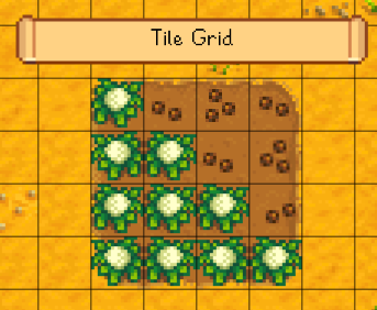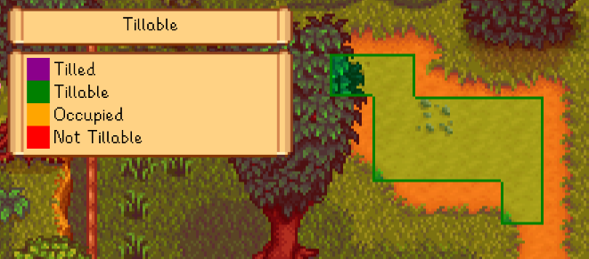 호미로 흙을 닦을 수 있는 곳을 보여줍니다. 작물 레이아웃을 계획하거나 맞춤형 지도를 테스트하는 데 유용합니다.