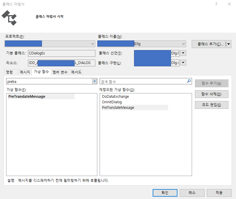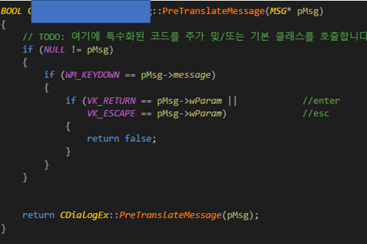 Dialog에 PretranslateMessage 가상함수 재정의