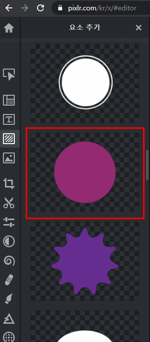 여러 도형들 중에서 아무 동그라미를 선택해준다.