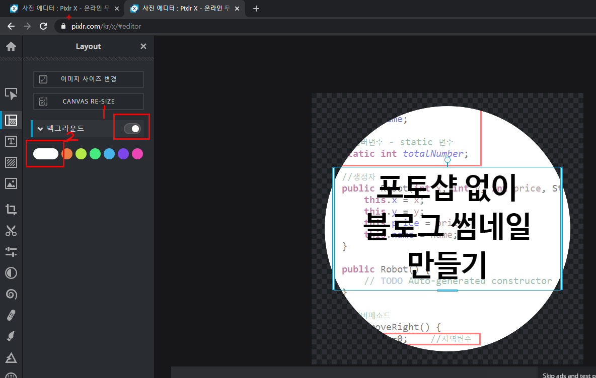 2. 포토샵 (링크) : https://pixlr.com/kr/x/