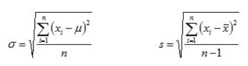표본의 분산, 표준편차의 계산식의 분모는 n-1이다.