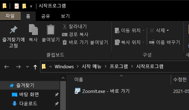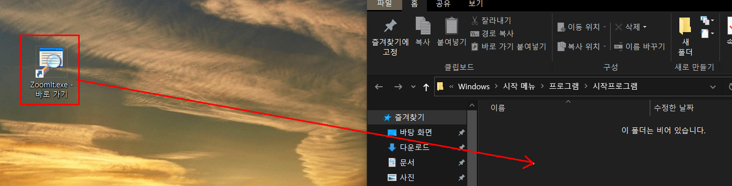 저는 바탕화면에 있는 ZoomIt 이라는 프로그램을 자동으로 시작되게 하고 싶은데요.
