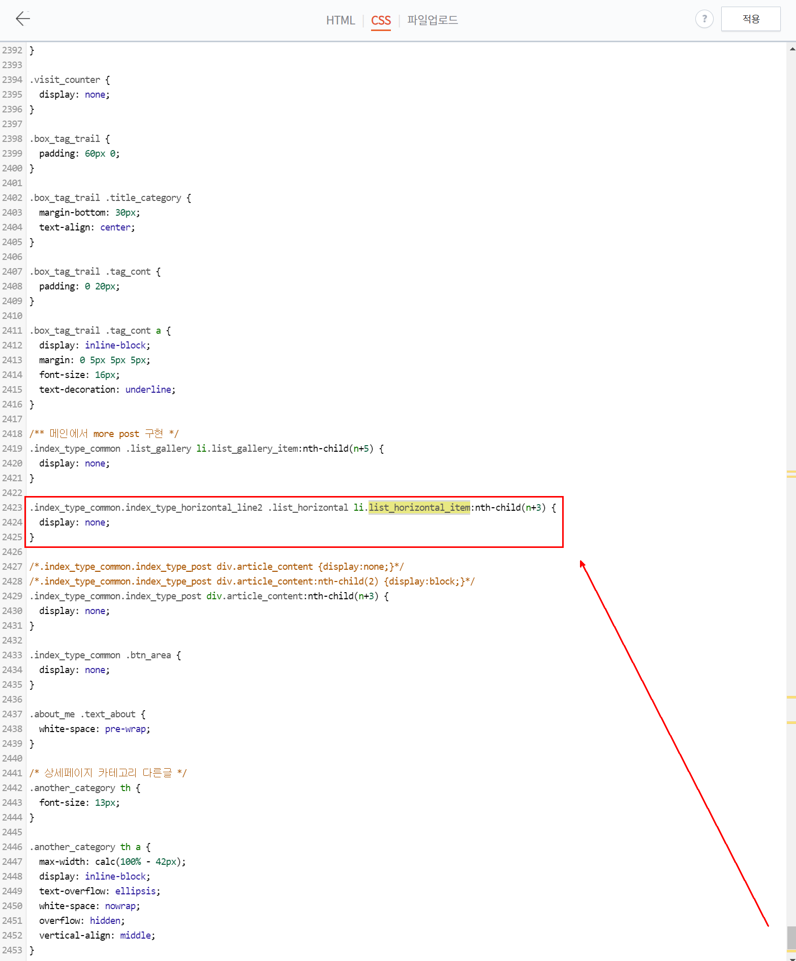 티스토리 스킨 편집에 있는 리스트의 속성에서
